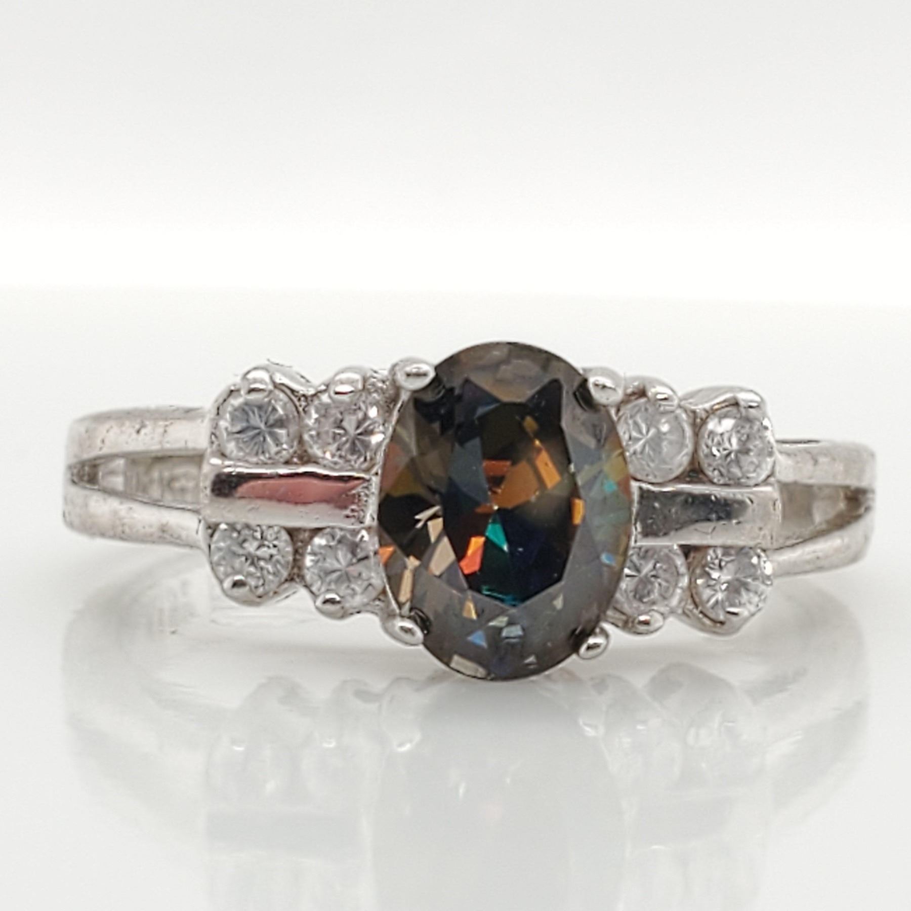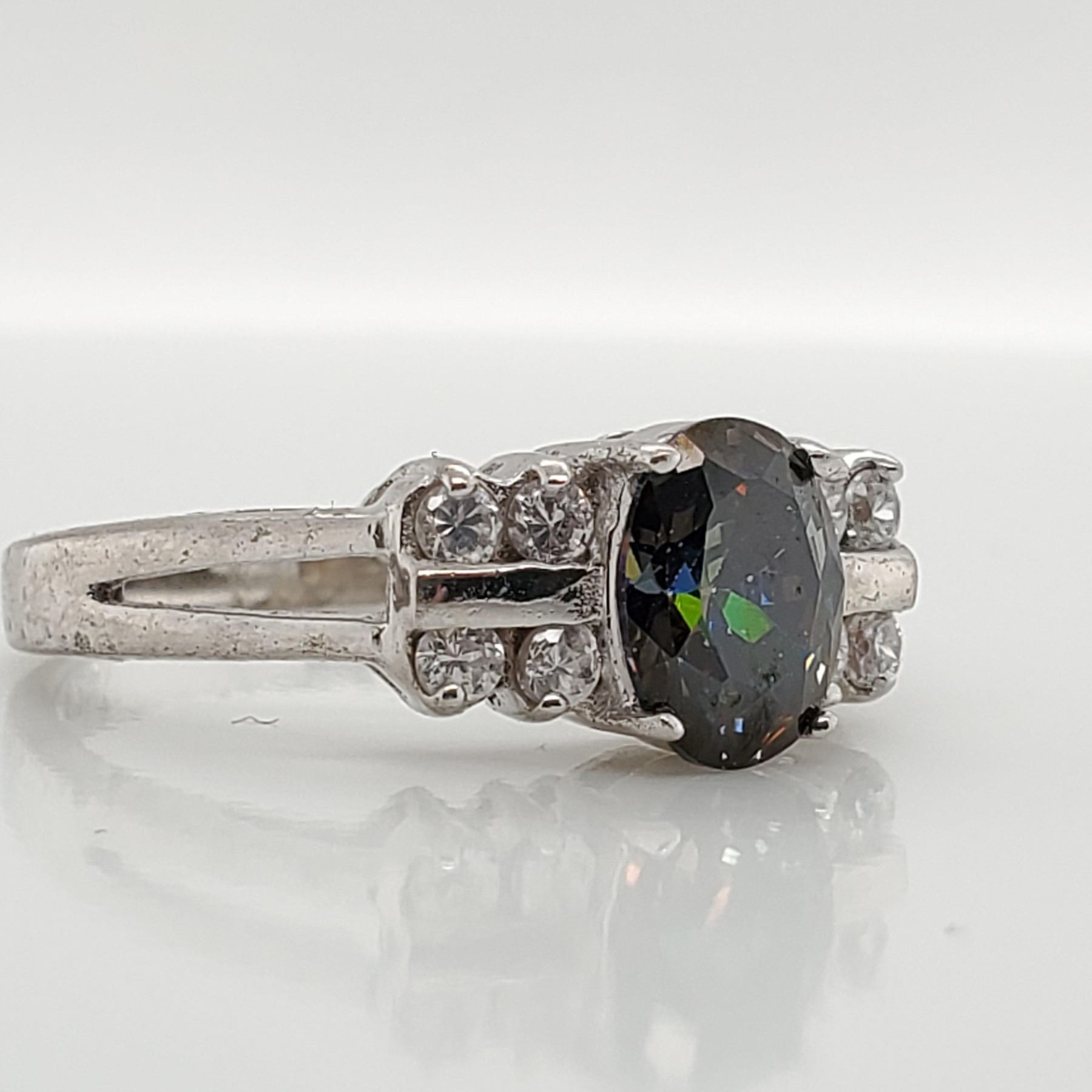 SILVER MYSTAKY(1CT) CUBIC ZIRCONIA(0.4CT) RING (~SIZE 7.5)(RING IS RESIZABLE FOR $40) (~WEIGHT 3.5G), SUGGESTED RETAIL VALUE $400