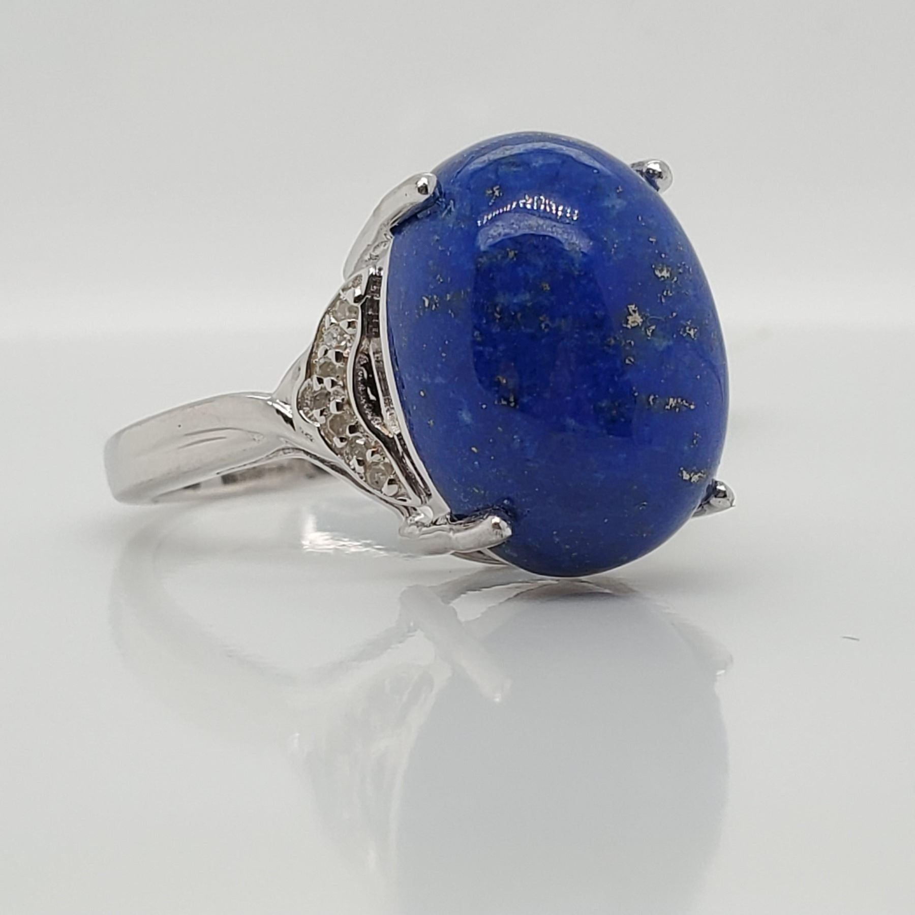 SILVER LAPIS (9.25CT) DIAMOND(0.25CT) RING (~SIZE 9)(RING IS RESIZABLE FOR $40) (~WEIGHT 6.3G), SUGGESTED RETAIL VALUE $500