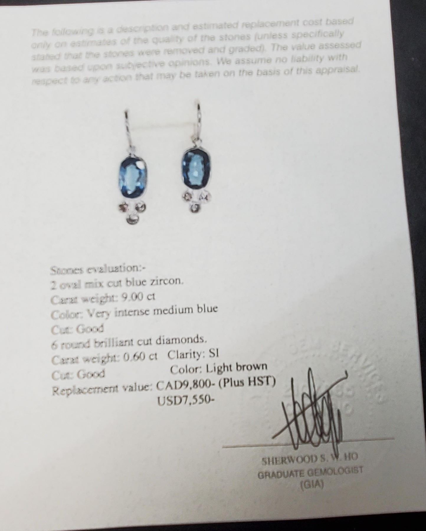 14K WHITE GOLD NATURAL BLUE ZIRCON(9CT) DIAMOND(0.6CT,SI, LIGHT BROWN) EARRINGS WEIGHT 2.9G, MADE IN CANADA, APPRAISED RETAIL $9800 **ALL ITEMS MUST BE REMOVED BY 5PM SATURDAY, MAY 27TH 2023. ALL REMAINING ITEMS WILL BE SUBJECT TO A $6.00 PER DAY STORAGE CHARGE. ANY ITEMS REMAINING AFTER MONDAY, JUNE 12TH, 2023 WILL BE CONSIDERED FORFEITED. NO REFUNDS WILL BE ISSUED FOR FORFEITED ITEMS. TO SCHEDULE A PICK UP APPOINTMENT CLICK HERE