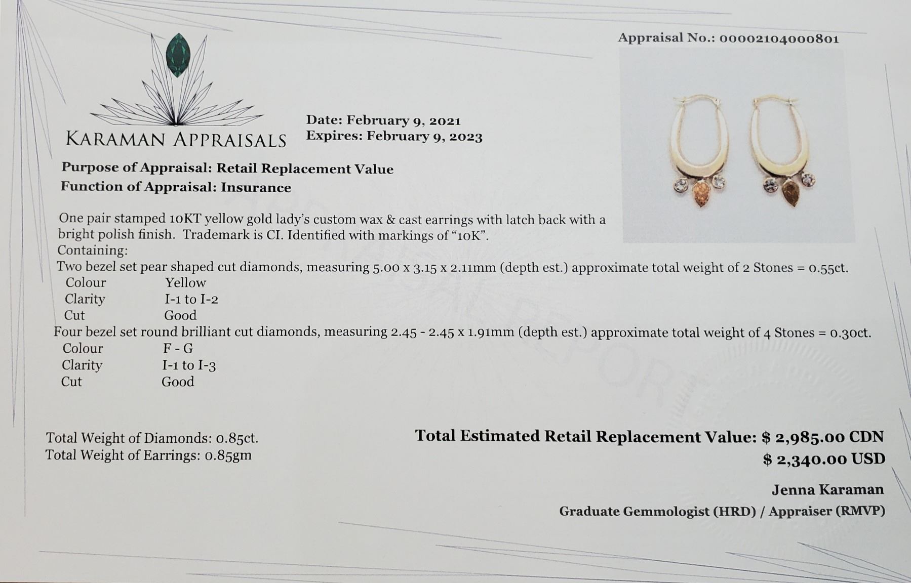 14K WHITE GOLD RARE FANCY DIAMOND(0.55CT) LATCH BACK, BEZEL SET, 2 YELLOW DIAMONDS(0.55CT,I1-I2), 4 DIAMONDS(0.3CT,F-G,I1-I3) EARRINGS WEIGHT 0.85G, MADE IN CANADA, APPRAISED RETAIL $2985 **ALL ITEMS MUST BE REMOVED BY 5PM SATURDAY, MAY 27TH 2023. ALL REMAINING ITEMS WILL BE SUBJECT TO A $6.00 PER DAY STORAGE CHARGE. ANY ITEMS REMAINING AFTER MONDAY, JUNE 12TH, 2023 WILL BE CONSIDERED FORFEITED. NO REFUNDS WILL BE ISSUED FOR FORFEITED ITEMS. TO SCHEDULE A PICK UP APPOINTMENT CLICK HERE