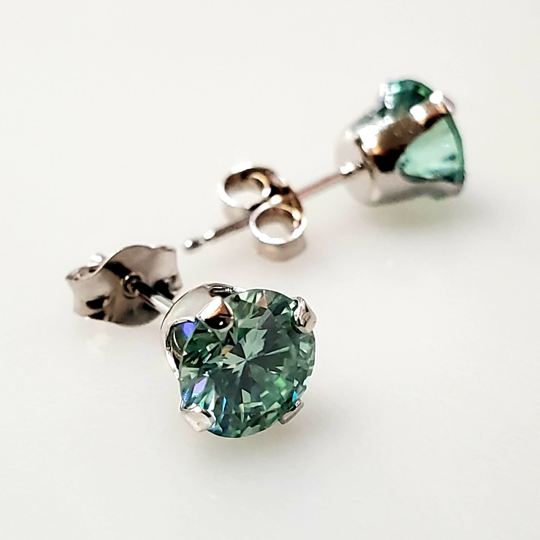 10K WHITE GOLD MOISSANITE(1.5CT) HAND ASSEMBLED STUDS, 2 BASKET SET LIGHT BLUISH GREEN MOISSANITE EARRINGS, WEIGHT 0.66G, MADE IN CANADA **ALL ITEMS MUST BE REMOVED BY 5PM SATURDAY, JULY 8ST 2023. ALL REMAINING ITEMS WILL BE SUBJECT TO A $6.00 PER DAY STORAGE CHARGE. ANY ITEMS REMAINING AFTER MONDAY, JULY 24TH, 2023 WILL BE CONSIDERED FORFEITED. NO REFUNDS WILL BE ISSUED FOR FORFEITED ITEMS. TO SCHEDULE A PICK UP APPOINTMENT CLICK HERE