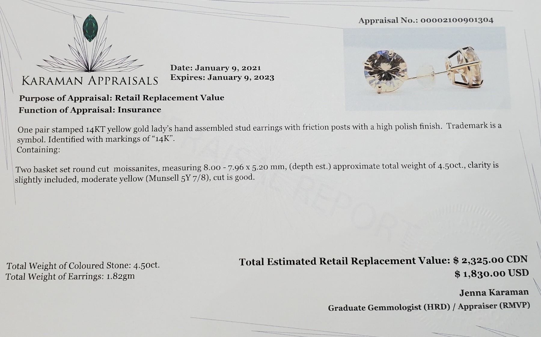 14K YELLOW GOLD YELLOW MOISSANITE(4.5CT) 2 BASKET SET MODERATE YELLOW MOISSANITE, HAND ASSEMBLED STUDS EARRINGS WEIGHT 1.82G, MADE IN CANADA, APPRAISED RETAIL $2325 *EARRINGS ARE ENTIRELY DIFFERENT HUES **ALL ITEMS MUST BE REMOVED BY 5PM SATURDAY, JULY 8ST 2023. ALL REMAINING ITEMS WILL BE SUBJECT TO A $6.00 PER DAY STORAGE CHARGE. ANY ITEMS REMAINING AFTER MONDAY, JULY 24TH, 2023 WILL BE CONSIDERED FORFEITED. NO REFUNDS WILL BE ISSUED FOR FORFEITED ITEMS. TO SCHEDULE A PICK UP APPOINTMENT CLICK HERE