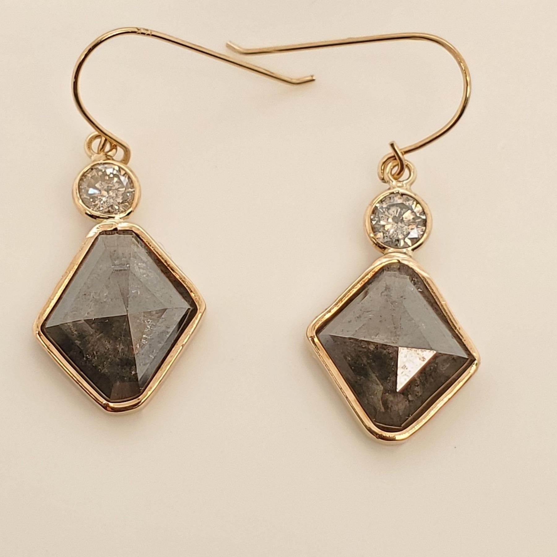 14K YELLOW GOLD FANCY ROSE CUT DIAMOND(4CT,I3,INTENSE DEEP BROWN) DIAMOND(0.4CT,I2,H-I) EARRINGS WEIGHT 1.3G, MADE IN CANADA, APPRAISED RETAIL $8700