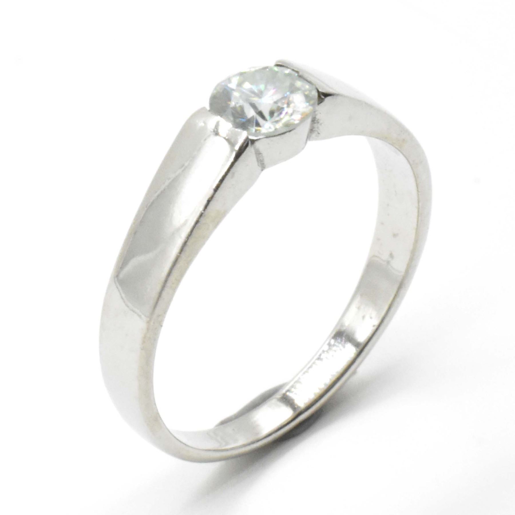 SILVER MOISSANITE (ROUND 5 MM)(0.65CT) RHODIUM PLATED TEST AND LOOKS BETTER THAN DIAMOND RING (~WEIGHT 2.5G)