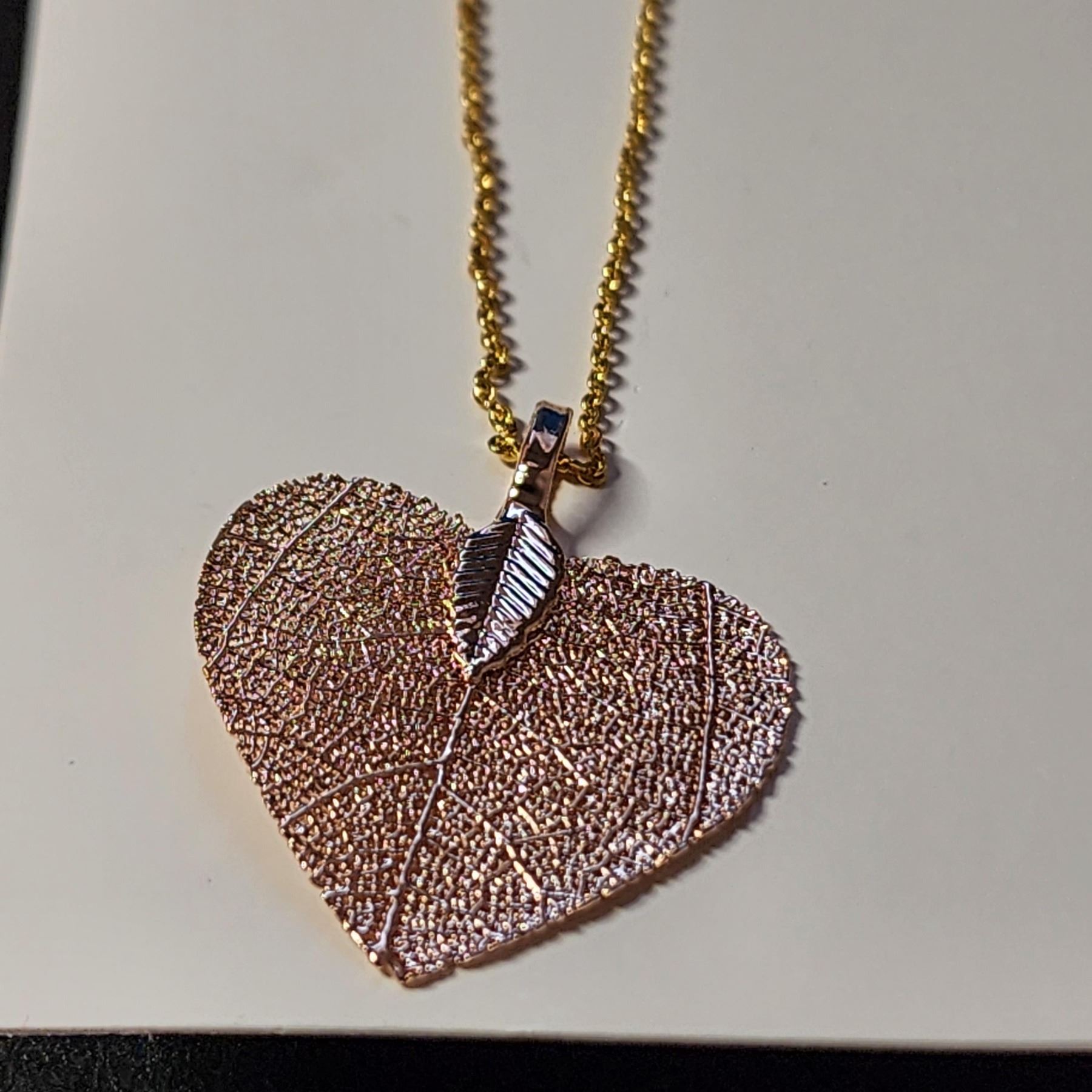 EC679-139 SILVER GOLD PLATD LEAF NECKLACE