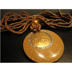 (1) COSTUME JEWELRY ARTISAN STYLED BEADED DYED SHELL PENDANT