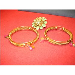COSTUME JEWELRY (2) GOLD TONE BRACELETS (1) BROOCH