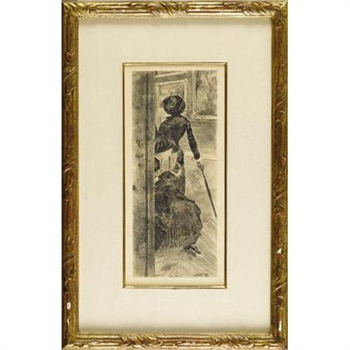 <B>EDGAR DEGAS </B></I>(French 1834-1917)<BR><I>Mary Cassatt at the Louvre</B></I>, 1879-1880<BR>Etching, soft ground etching, aquatint, and drypoint<BR>12 x 5 inches (30.5 x 12.7 cm)<BR>Catalogue raisonné: Delteil, 29<BR><BR>Provenance:<BR>Mr. and Mrs. Edgar E. Townes, Houston, Texas <B>Condition Report:</B> <BR><BR><b>Shipping:</b> Requires 3rd Party Shipping (<a target="_blank" href="http://www.heritageauctions.com/common/shipping.php">view shipping information</a>