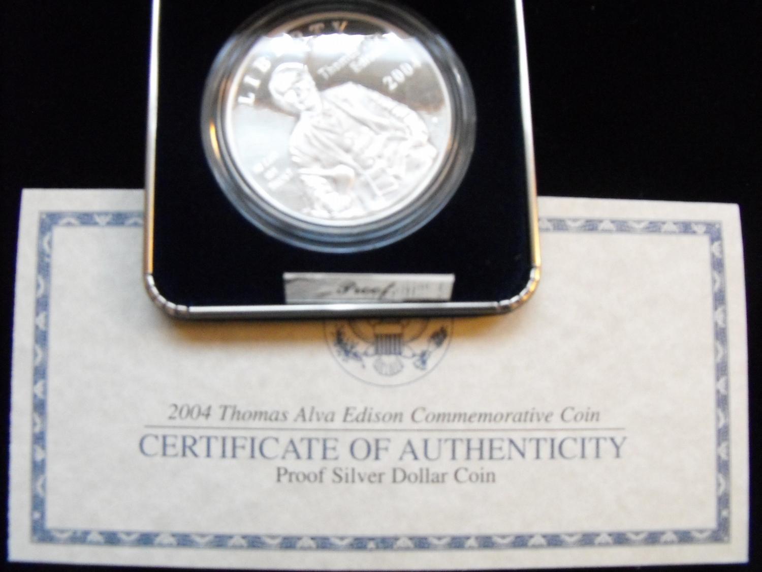 EDISON COMMEMORATIVE SILVER PROOF BOX & PAPERS