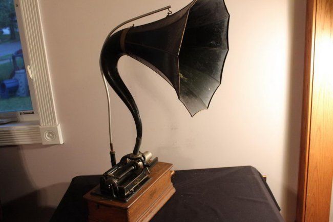 EDISON HOME PHONOGRAPH - MOTOR WORKS FINE BUT CYLINDER DOES NOT TURN - NEEDS ADJUSTING - GREAT HORN - SERIAL# 397562 - 16 X 12 X 9
