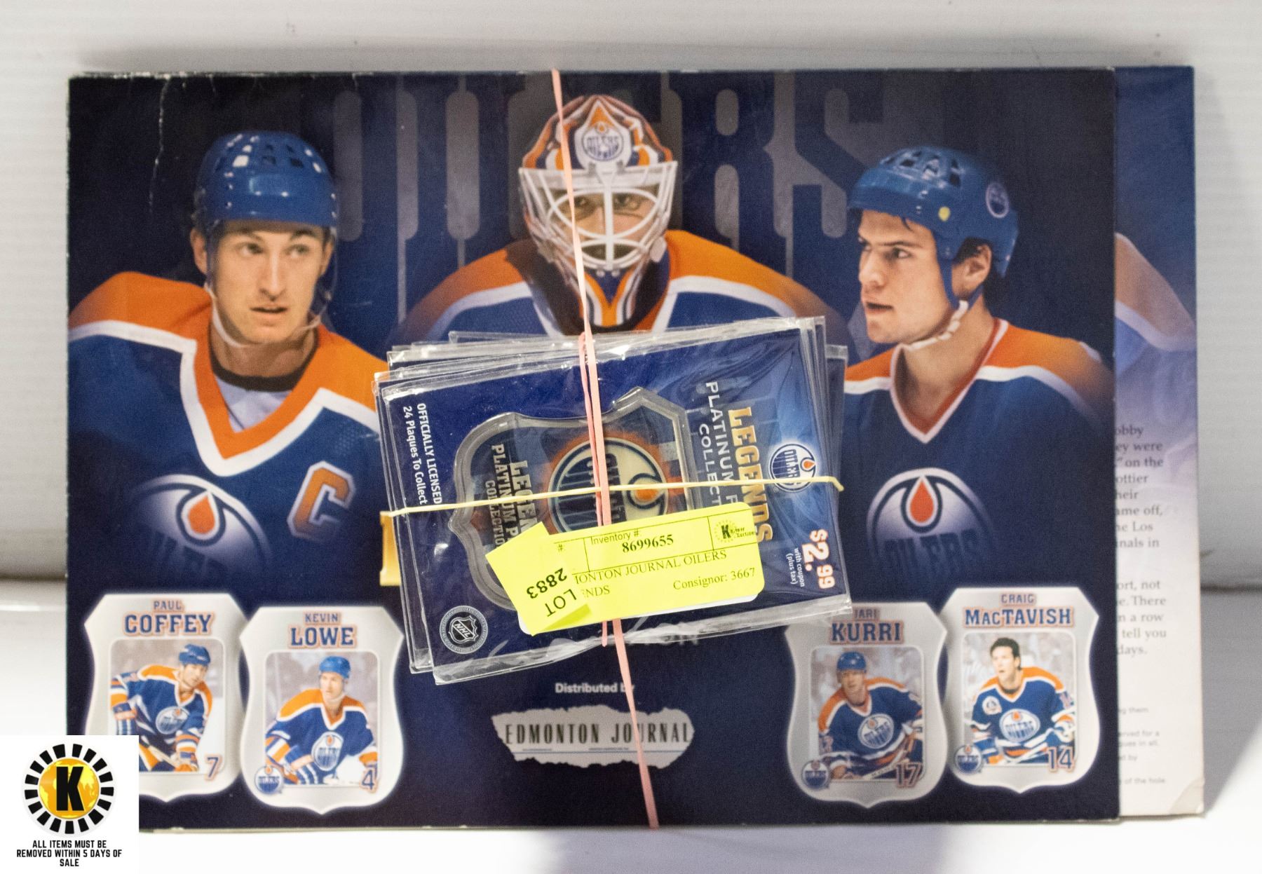 ISSUED DATE 2007 EDMONTO JOURNAL OILERS LEGENDS PLATINUM PLAQUE COLLECTION COMPLETE SET DISPLAY BOARD AND PLAQUES W/EXTRA DISPLAY BOARD