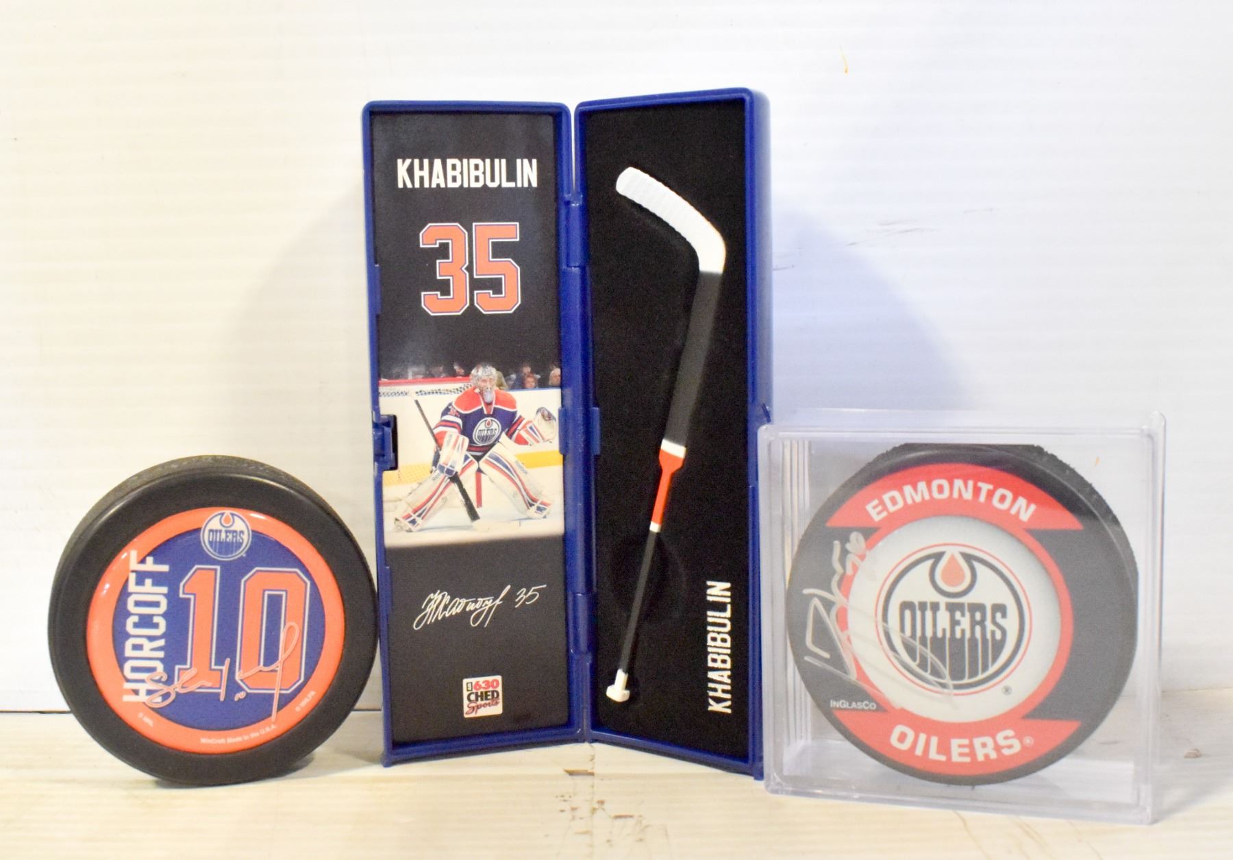 SHAWN HORCOFF NAMEPLATE PUCK AND KHABIBULIN MINI-STICK #ED/10000.