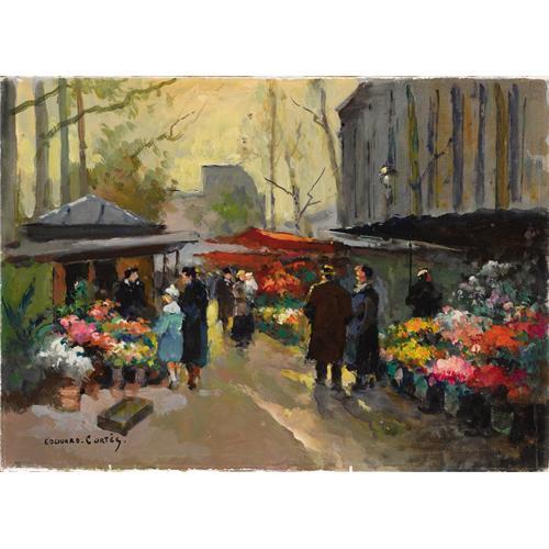 <B>EDOUARD LÉON CORTÈS</B></I> (French 1882-1969)<BR><I>Marche aux Fleurs</B></I><BR>Oil on canvas<BR>13 x 18 inches (33 x 45.7 cm)<BR>Signed at lower left: <I>Edouard.Cortès</B></I><BR><BR>Provenace:<BR>Galerie F. Clair, 1971 (Paris);<BR>Private collection (Loop, Texas) <B>Condition Report:</B> Overall good condition.<BR><BR><b>Shipping:</b> Requires 3rd Party Shipping (<a target="_blank" href="http://www.heritageauctions.com/common/shipping.php">view shipping information</a>)