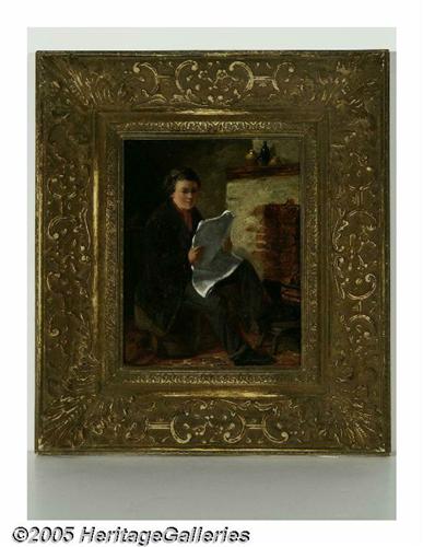 <B>EDWARD CHARLES BARNES (British 1830-1882)</B></I><BR>Reading by the Fire, 1862<BR>Oil on panel<BR>10in. x 8in.<BR>Signed and dated lower right<BR><BR>Condition Report: Overall excellent condition<BR>