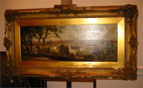 EDWARD HENRY (1864-1922) English school. "Figures Walking Through a Forest". Oil on canvas. Signed lower right. 15" x 33". In gilt frame. Ref. Benezit, vol.4, page 737. 3500-4000