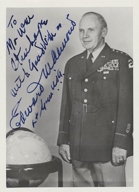 (1892 - 1979) Army Chief of Staff during World War II, commanded the 92nd Infantry Division, made almost exclusively of African-American soldiers. I.S.P. 3 1/2" x 5" b/w, a three-quarter length portrait in uniform, boldly inscribed and signed adding rank as lieutenant general. Fine.