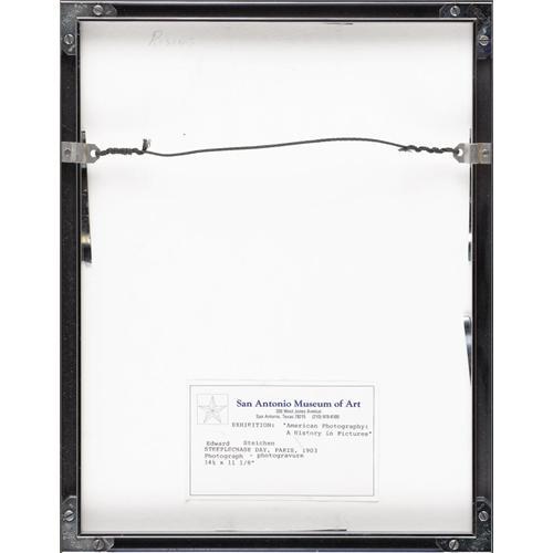 <B>EDWARD STEICHEN</B></I> (American 1879-1973)<BR><I>Steeplechase Day, Paris,</B></I> 1903<BR>Photo grauvre for Camera Work<BR>8 x 6 inches (20.3 x 15.2 cm)<BR><BR>Provenance:<BR>The Collection of Mrs. Rowena Nadig (San Antonio, Texas) <BR><BR>Exhibition:<BR>San Antonio Museum of Art, San Antonio, Texas, <I>American Photography: A History in Pictures,</B></I> 1994 <B>Condition Report:</B> Normal signs of wear as appropriate with age, photo grauvre is matted and framed<BR><BR><b>Shipping:</b> Requires 3rd Party Shipping (<a target="_blank" href="http://www.heritageauctions.com/common/shipping.php">view shipping information</a>)