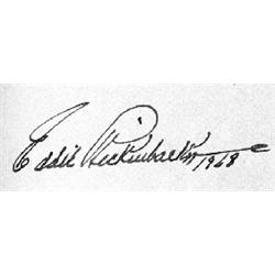 <b>1208. EDWARD V. RICKENBACKER</b> Signed book, his autobiography <i>Rickenbacker</i>, Englewood Cliffs, Prentice Hall, Inc., 1967, boldly signed "<i>Eddie Rickenbacker 1968</i>" on the blue front flyleaf. Fine, with slightly worn dust jacket.<b> $60-80 </b>