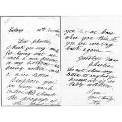 (1841 - 1910) King of Great Britain and Ireland, eldest son of Queen Victoria who because of his indiscretions was kept in the dark concerning matters of state until he succeeded to the throne following his mother's death. His reign was marked by more openness and visibility of the royal family. Early A.L.S "A[lbert]. E[dward]." as Prince of Wales, 2pp. 8vo., Windsor Castle, Nov. 12, 1854 to his friend Charlie. The 13-year-old future king writes: "…I thank you very much for having sent me such a nice present on my birthday…I suppose you are very much interested about the progress of the war; will you let me know when you think you are coming back again. -- Goodbye dear Charlie. Do not show my letter to anybody because it is so badly written…". With holograph transmittal envelope, very good.