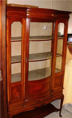 EDWARDIAN INLAID MAHOGANY BEVELLED GLASS FRONT DI
