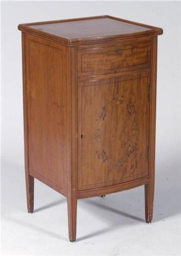 EDWARDIAN INLAID SIDE CABINET with bow front, 30"x16"x16", circa 1910,, CONDITION: excellent, no damage or repairs.
