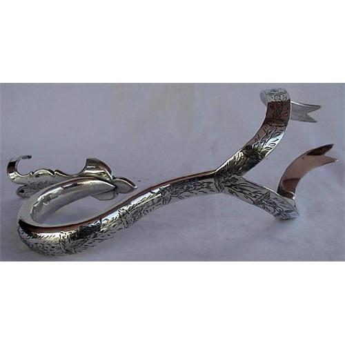C1900 English Edwardian engraved silver plate wine bottle holder. 9 3/4inches from end to end. Fabulous quality wine bottle holder with svelte curling shape and rounded edges. Beautifully hand engraved with vine leaves. Top quality workmanship and gorgeous design. Condition is excellent.