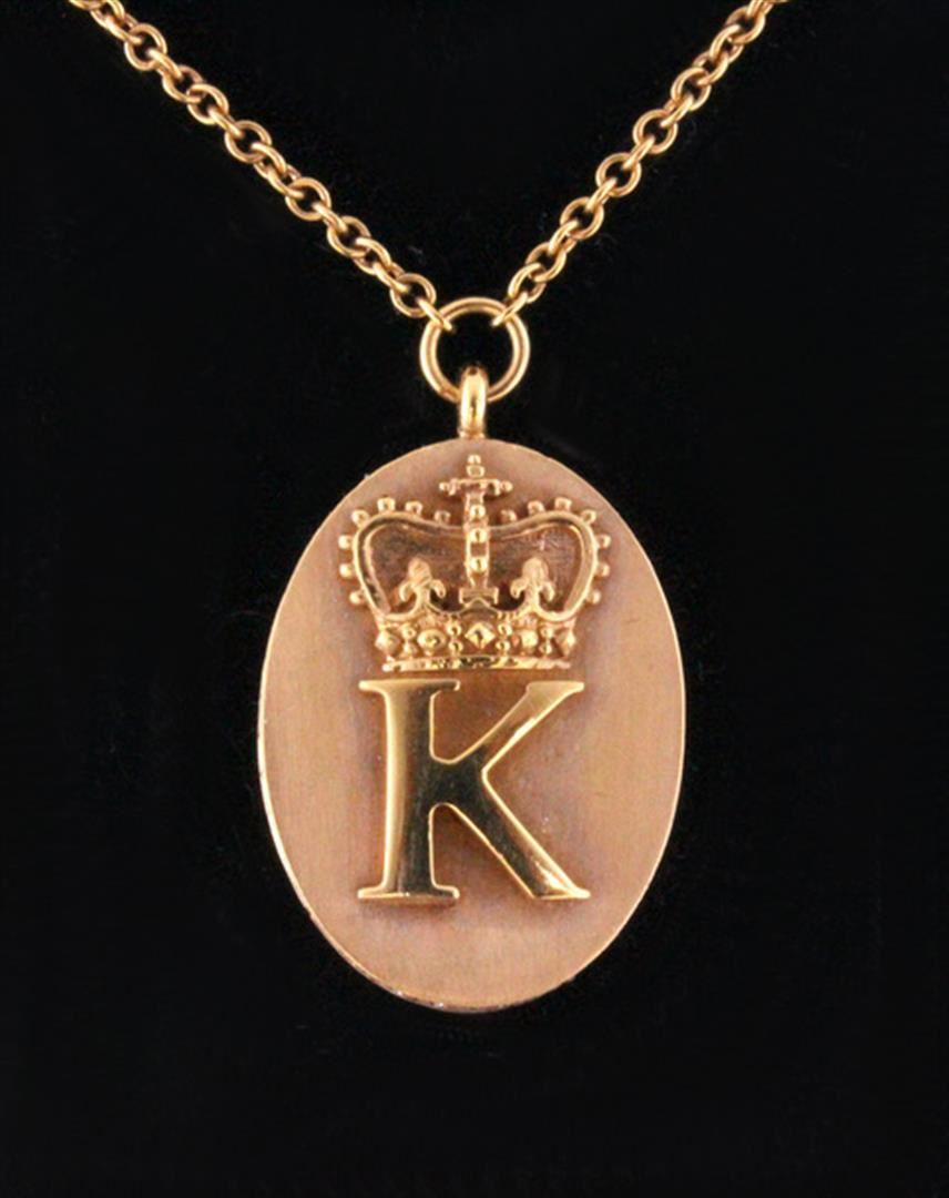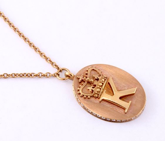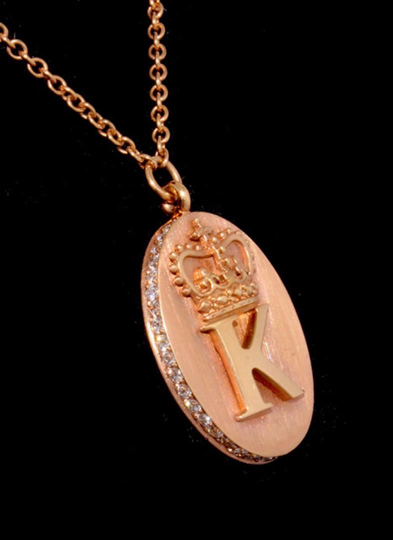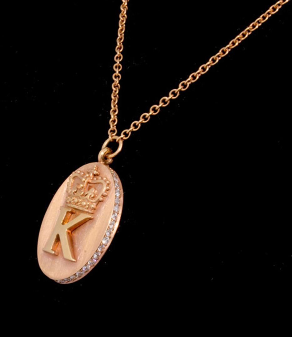 EDWARDS & RELLAS K CROWN PENDANT NECKLACE: 15 MMM X 20MM SUR LE BORD COLLECTION 1.00 CTW RBC G VS1 DIAMONDS (NATURAL) 18K ROSE GOLD 18" CHAIN WEIGHT 11 GRAMS