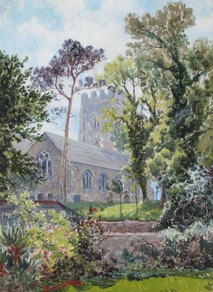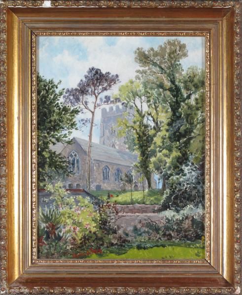 -untitled, Cathedral with Figures in Spring Gardens