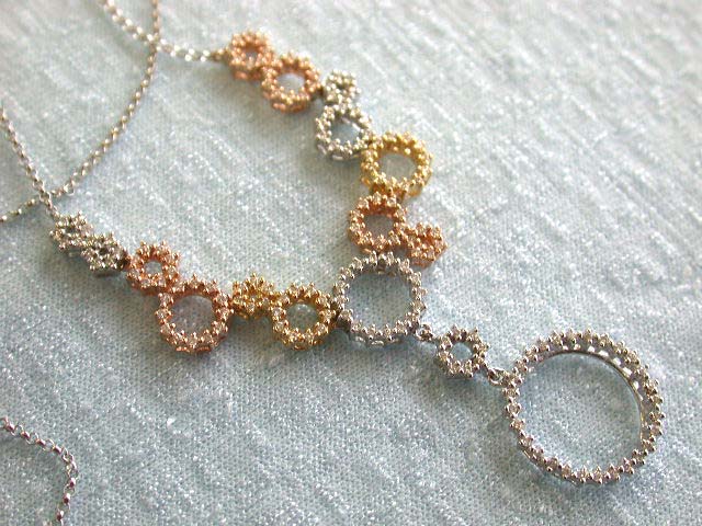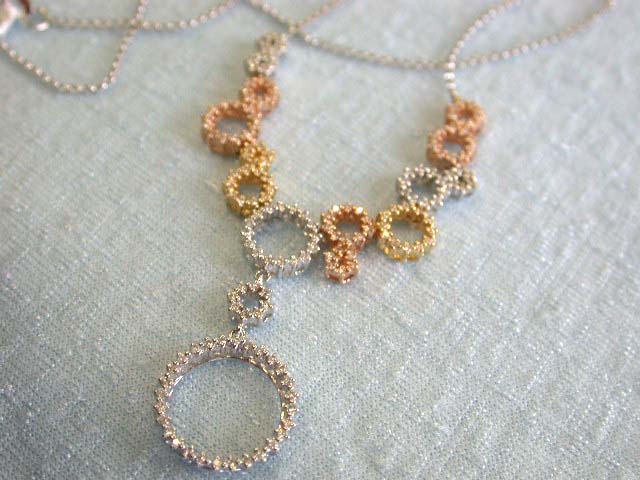 18k Tri-color Gold Necklace w/ Diamonds - 0.58 carat, round cut G color and VS clarity; length - 15.5 inches long and Weight - 7.6 grams