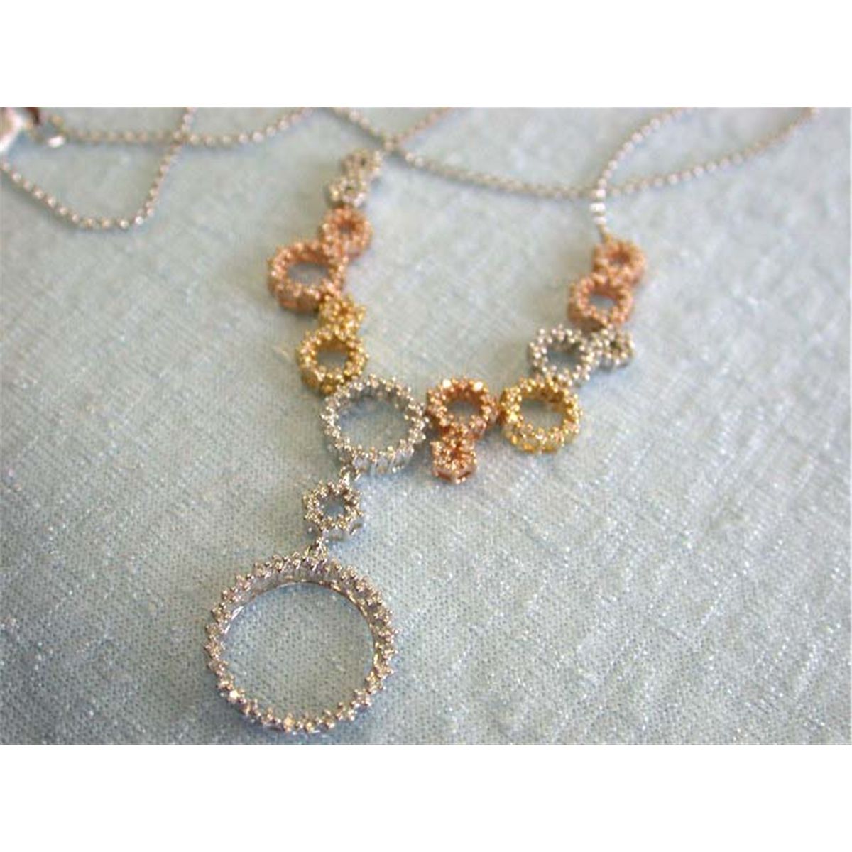 18k Tri-color Gold Necklace w/ Diamonds - 0.58 carat, round cut G color and VS clarity; length - 15.5 inches long and Weight - 7.6 grams