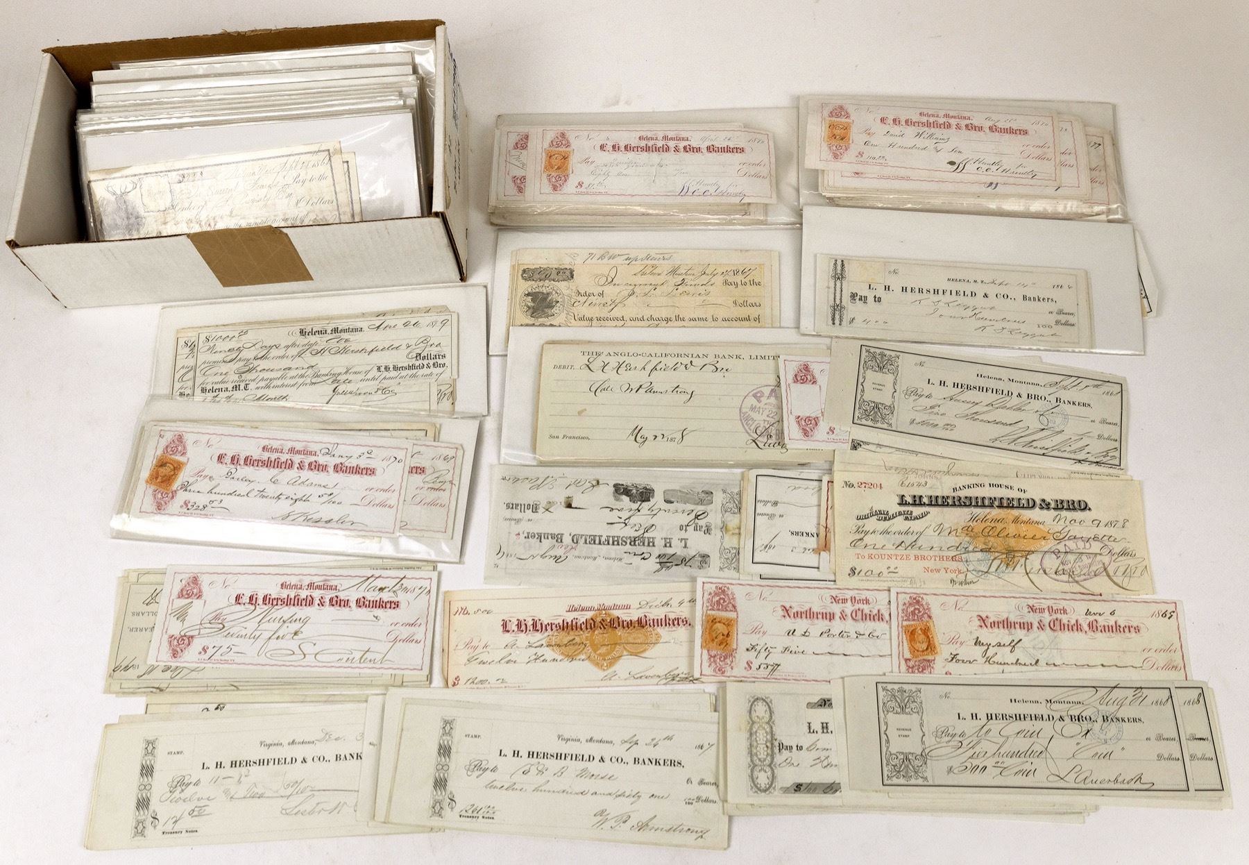About 200 checks, EG Hershfield Banker checks c. 1860's-1870's. City: State:Montana Date: