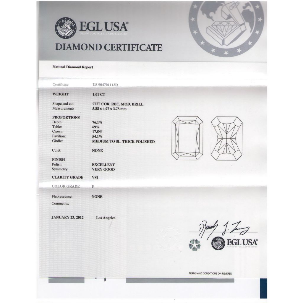 EGL 1.01 ctw Certified Radiant Diamond F,VS1 **|**|** ; MSRP: $8600