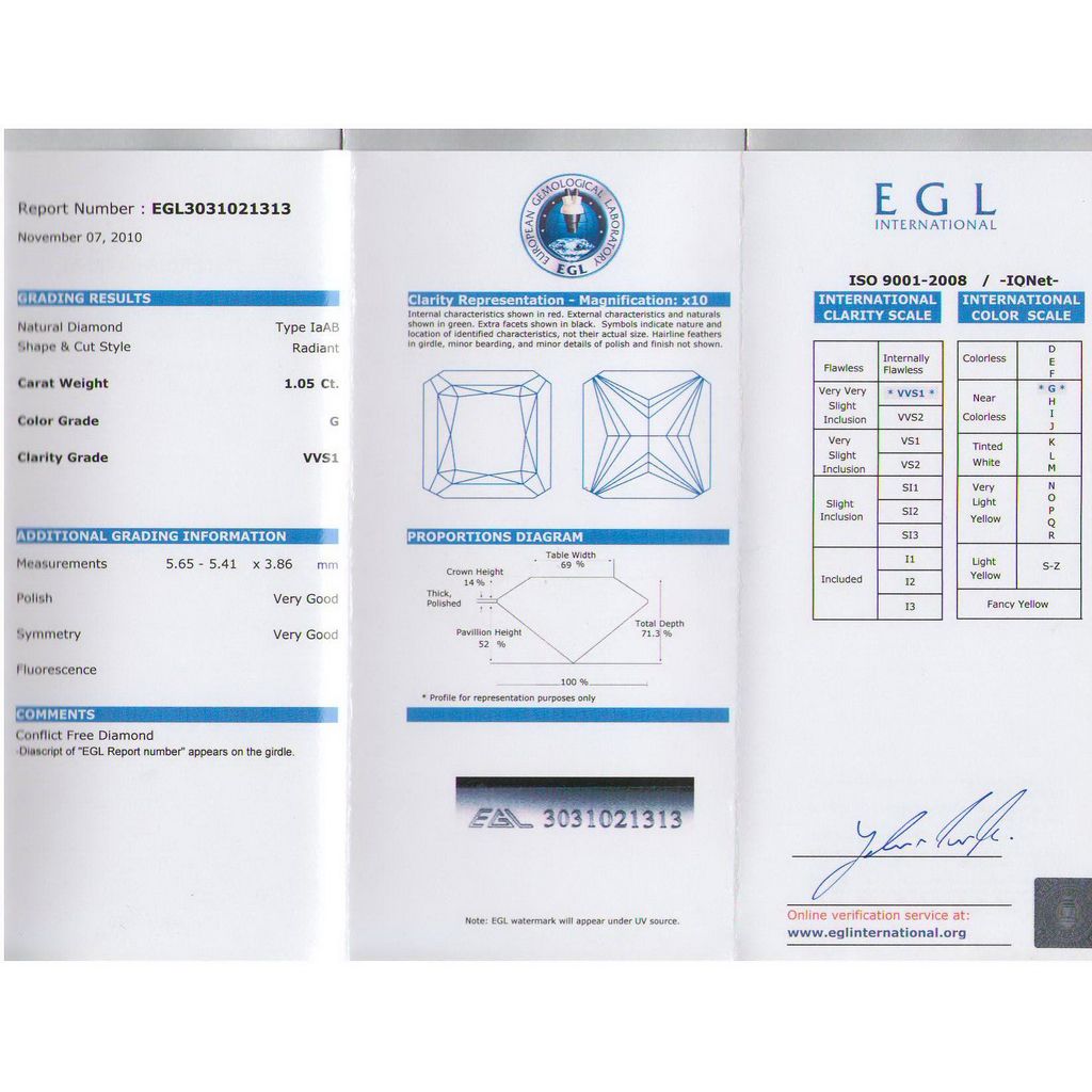 EGL 1.05 ctw Certified Radiant Diamond G,VVS1 **|**|** ; MSRP: $6600