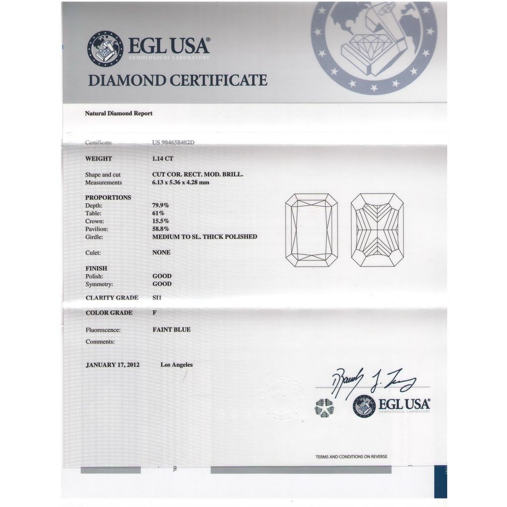 EGL 1.14 ctw Certified Radiant Diamond F,SI1 **|**|** ; MSRP: $6000