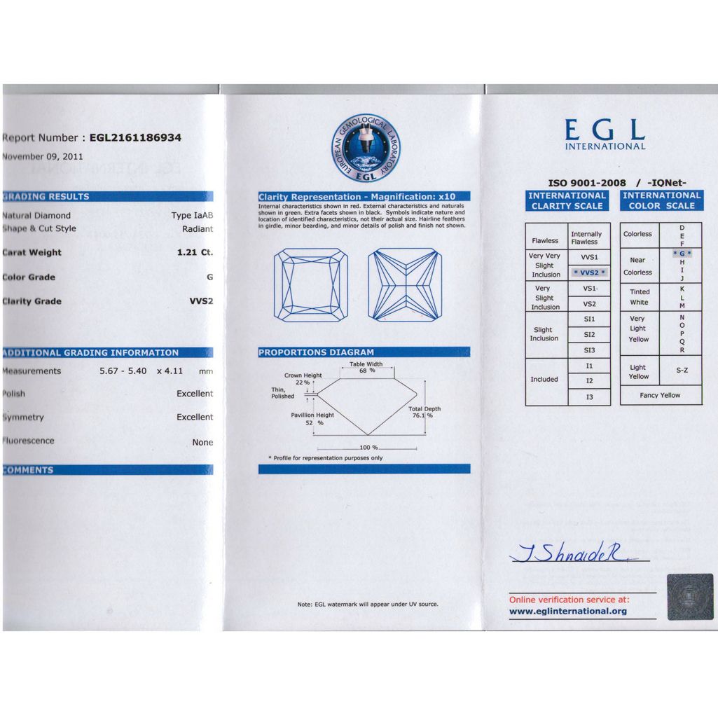 EGL 1.21 ctw Certified Radiant Diamond I,VVS1 **|**|** ; MSRP: $9300