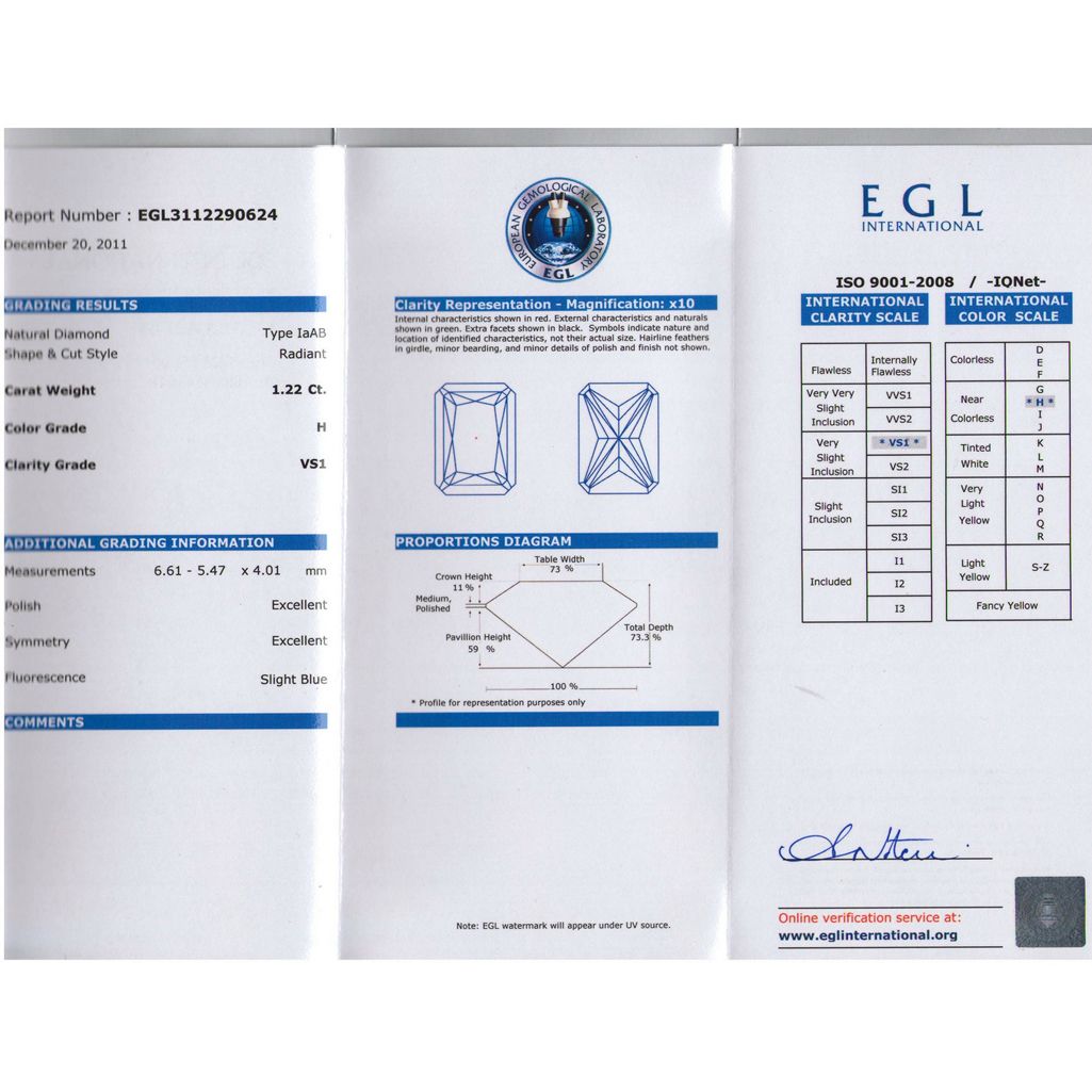 EGL 1.22 ctw Certified Radiant Diamond H,VS1 **|**|** ; MSRP: $7000