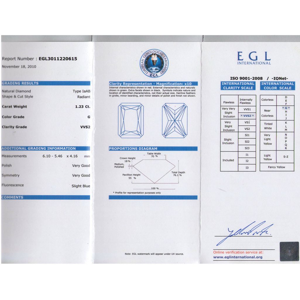 EGL 1.23 ctw Certified Radiant Diamond G,VVS2 **|**|** ; MSRP: $9500
