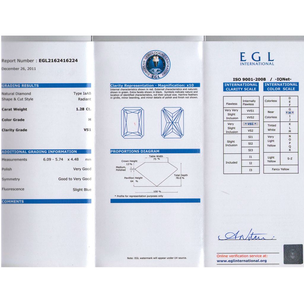 EGL 1.28 ctw Certified Radiant Diamond H,VS1 **|**|**  ; MSRP: $7300