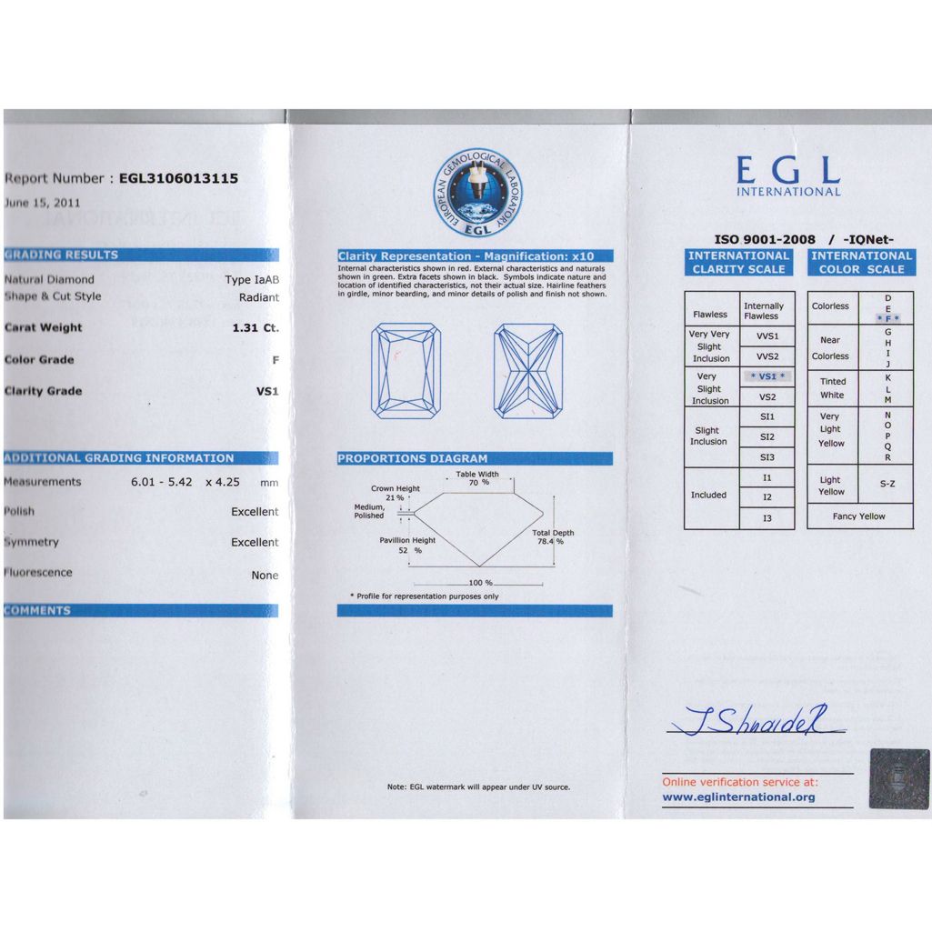 EGL 1.31 ctw Certified Radiant Diamond F,VS1 **|**|** ; MSRP: $13700