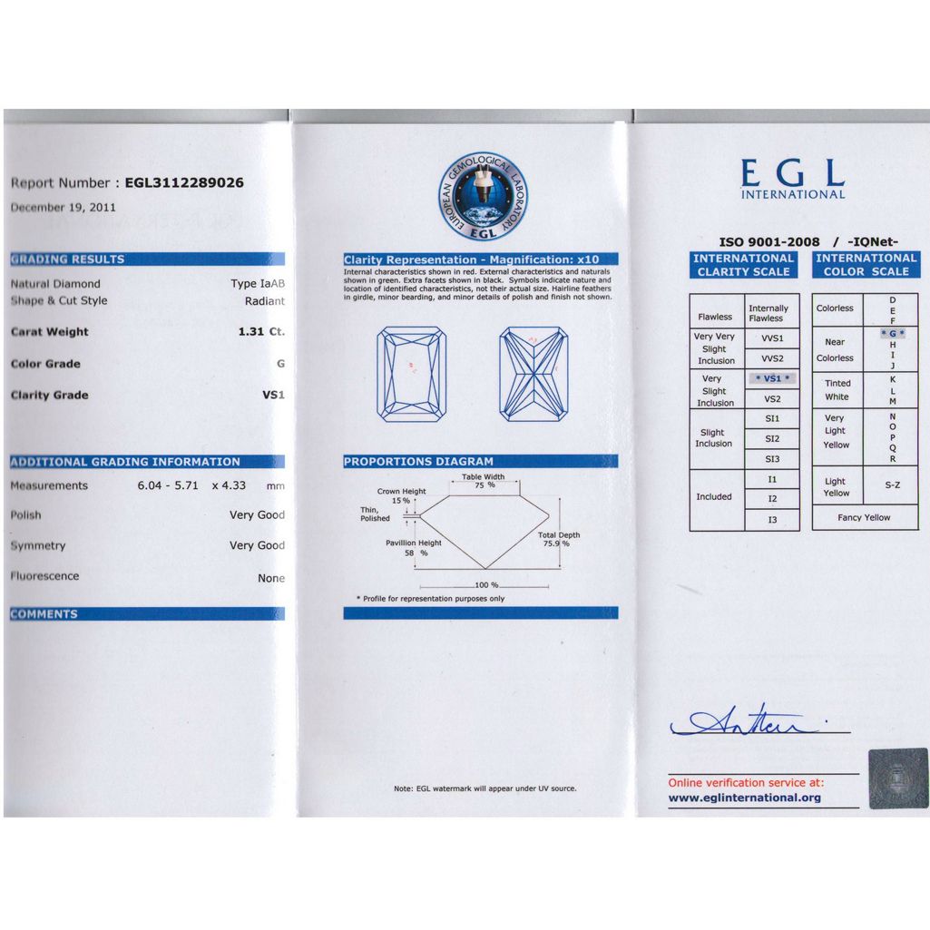 EGL 1.31 ctw Certified Radiant Diamond G,VS1 **|**|** ; MSRP: $10400