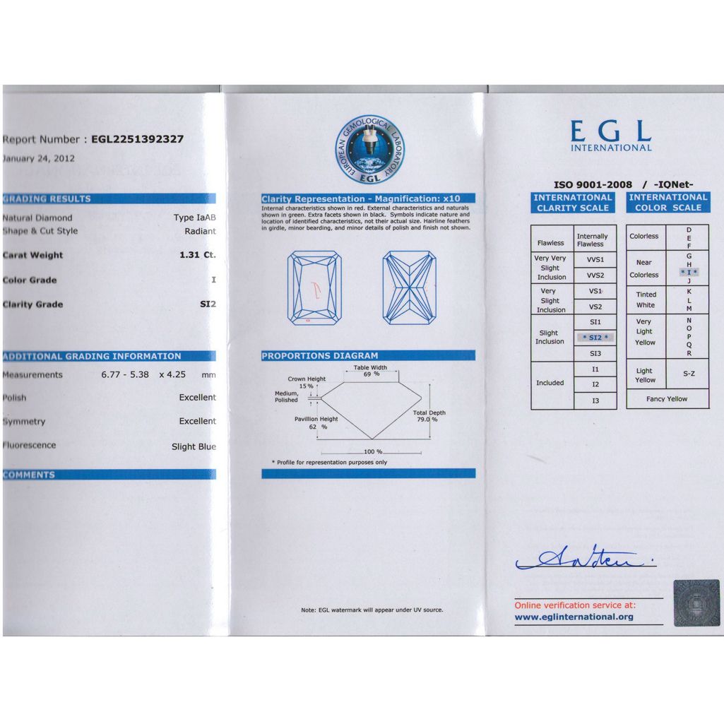 EGL 1.31 ctw Certified Radiant Diamond I,SI2 **|**|** ; MSRP: $5400