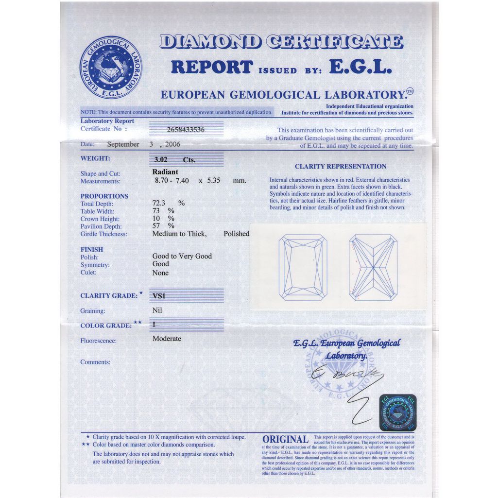 EGL 3.02 ctw Certified Radiant Diamond I,VS1 **|**|** ; MSRP: $36300