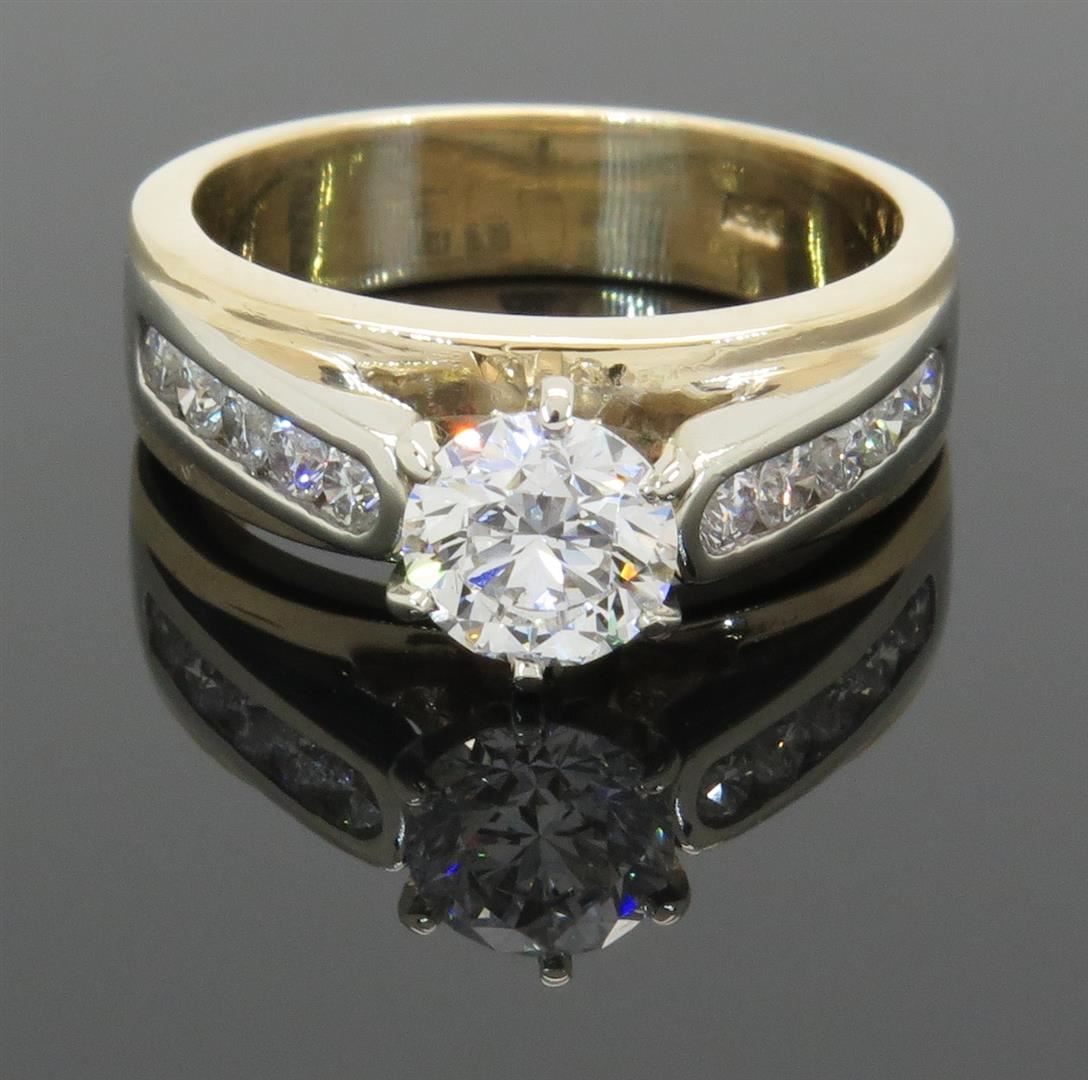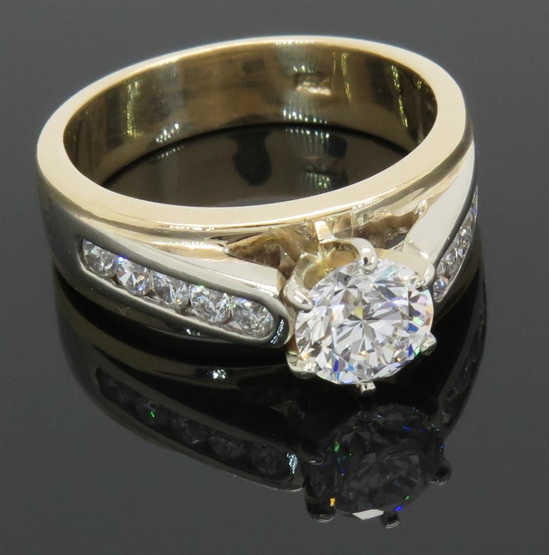One tested 14K gold certified diamond ring. Containing: One EGL Certified Round Brilliant Cut Diamond. Clarity: VS2, Color: D. 10 Round Brilliant Cut Diamonds. Approximate total diamond weight: 1.40CTW. Diamonds are graded in the mounting, unless otherwis EGL USA Appraised.