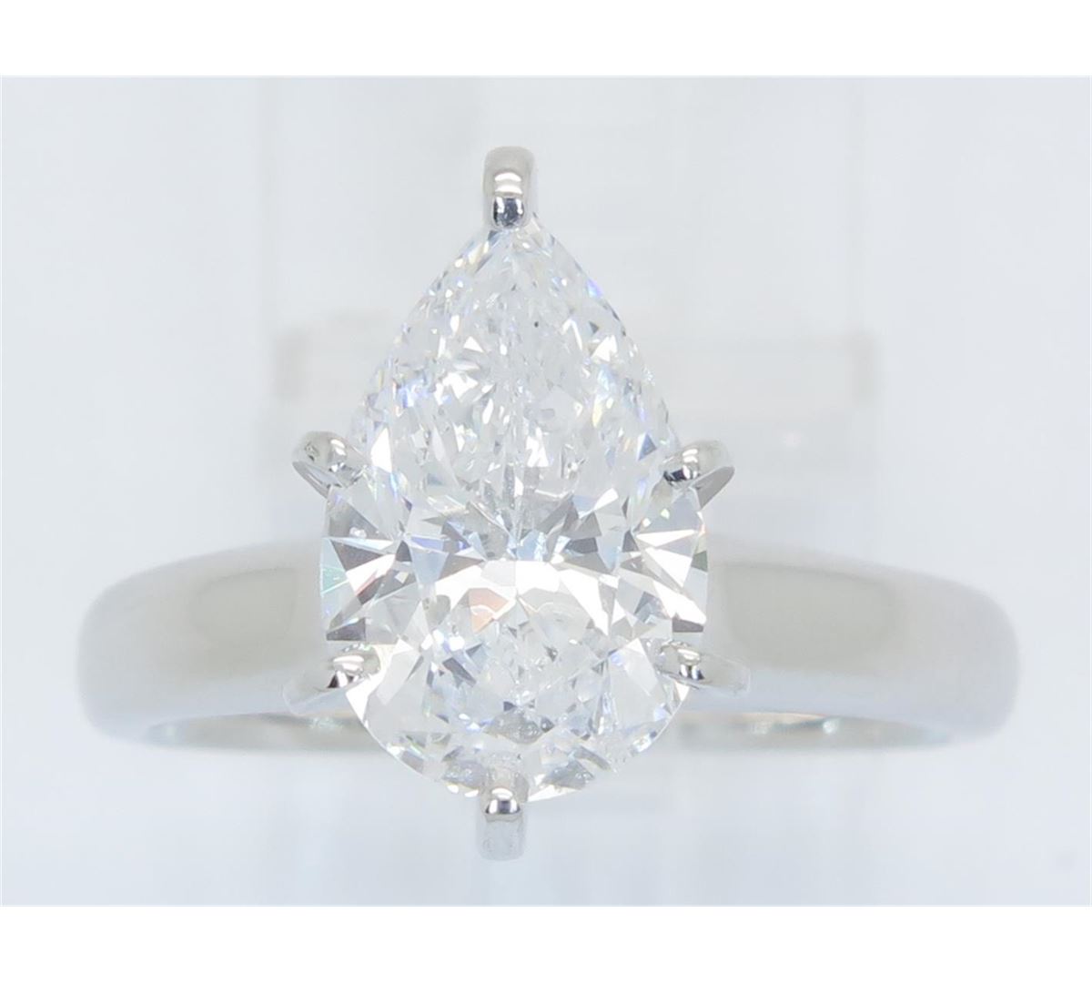 One tested 14K white gold certified diamond ring. Containing: 1 EGL Certified Pear Cut Diamond, Size: 3.02CT, Clarity: VS2, Color: D. Weight of ring: 5.57 grams. Size: 7.0. EGL USA Appraised.