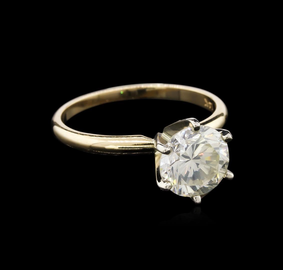 One polished, stamped, and tested 14K yellow gold ring mounted with one genuine diamond weighing 2.20 carat. This item weighs 2.9 grams, condition is new, excellent workmanship. Main Gemstone: EGL Report No.: EGL3410154826. Identity: Natural Diamond. Shape: Round. Cutting Style: Brilliant Cut. Measurements: 2.17 - 8.11 x 5.39 mm. Weight: 2.20 carat. Clarity Grade: SI2. Color Grade: I. Polish: Good. Symmetry: Good. Refractive Index: 2.417. Chemical Formula: C. Hardness: 10. Diamond Weight: 2.20ct. Weight of Item: 2.9 grams. Gold Content: 14K Yellow Gold. AIGL Appraised at $32,340.00.