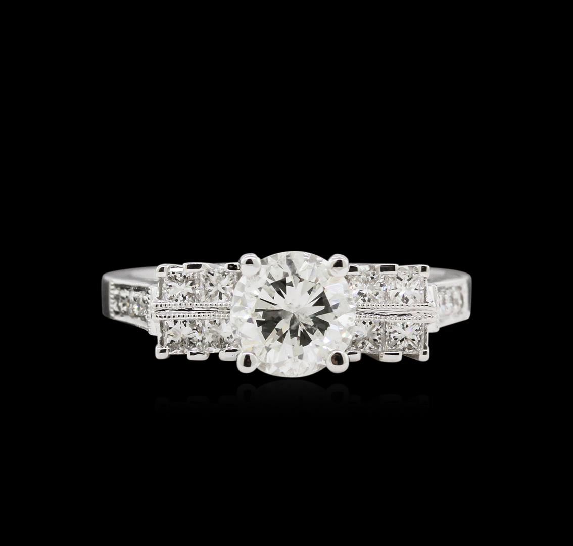 One electronically tested 18KT white gold lady's combination cast & assembled station wedding ring with a bright polish with milgrain detailing finish. The featured lady's ring has a shank measuring 2.30 millimeters in width. Identified with markings of "18K". Condition is new, good workmanship. Containing: One prong set round brilliant cut diamond, measuring 6.74 - 6.62 x 4.28mm (depth est.) approximate weight of 1.21ct. EGL USA Laboratory Report #902788910. Clarity: SI-2. Color: Good Eight prong set princess cut diamonds, measuring 2.20 x 2.10 x 1.58mm (depth est.) approximate total weight of 8 Stones = 0.48ct. Graded in the setting. Clarity: VS-2 to SI-1. Color: G - Very Good Eight prong set round brilliant cut diamonds, measuring 1.50 - 1.40 x 0.90mm (depth est.) approximate total weight of 8 Stones = 0.08ct. Graded in the setting. Clarity: VS-2 to SI-1. Color: G - Good. Total Weight of Diamonds 1.77ct. Total Weight of Wedding Ring 5.20gm. GAS Appraised at $16,885.00.