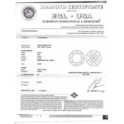 EGL(USA)Certified 2.12 ctw Diamond Loose 1 Round SI2,E **|**|** Total CTW: 2.12; Jewelry: Loose Diamond ; Diamond Count: 1 Round Brilliant ; Diamond CTW: 2.12 ; Clarity: SI2 ; Color: E ; MSRP: $32100