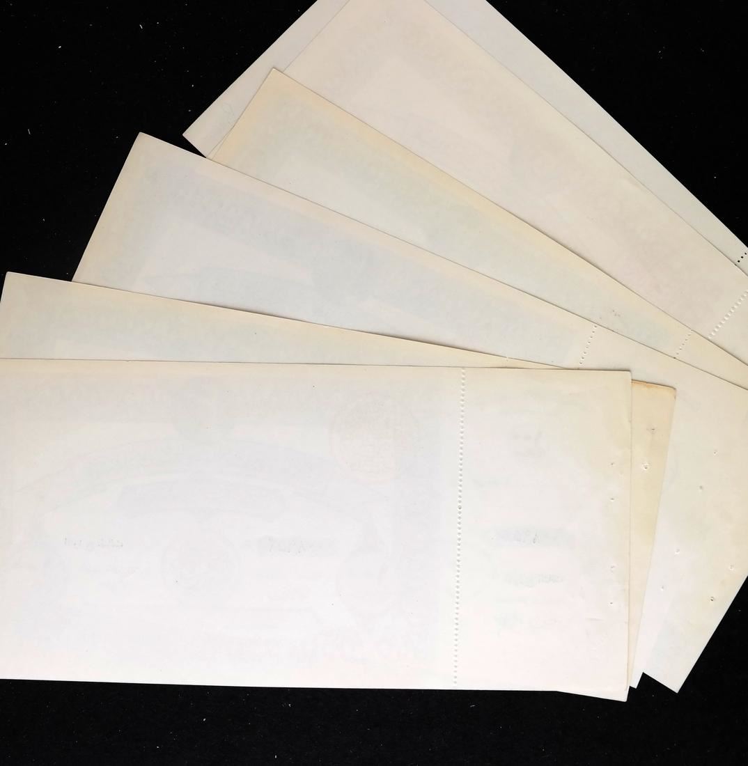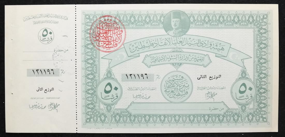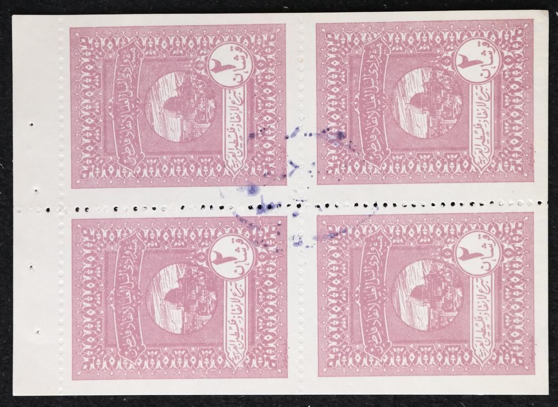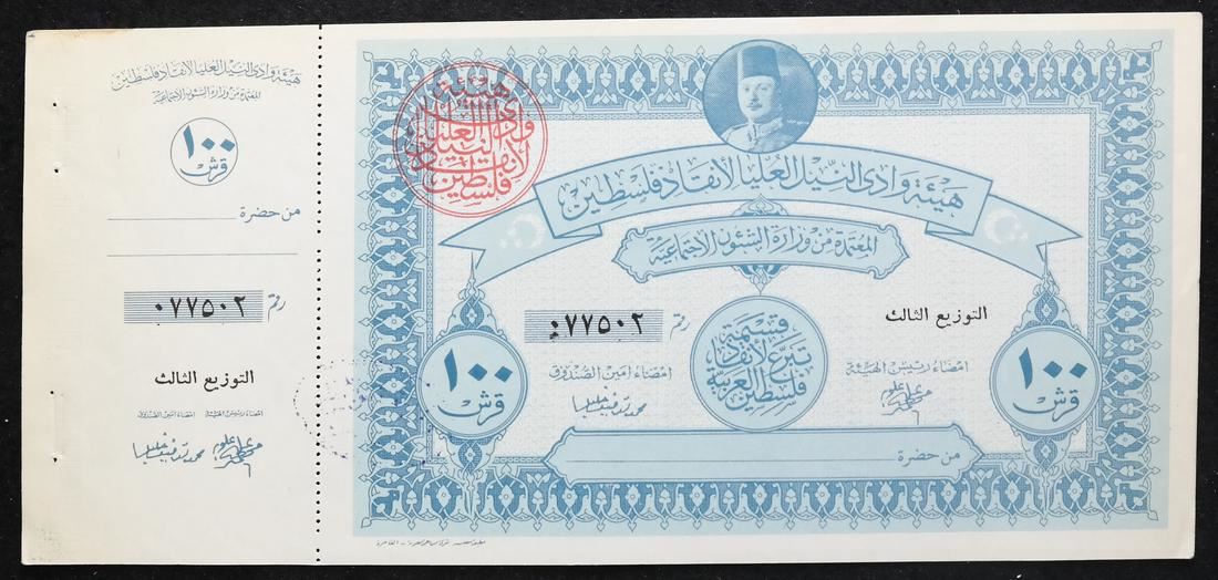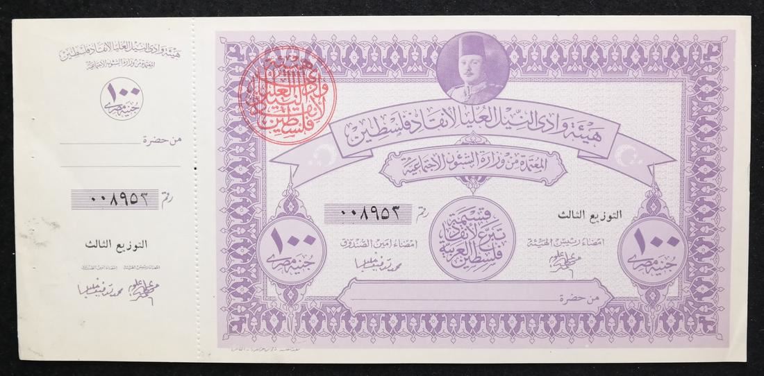 Includes 5, 10, two 50 and two 100 war fund savings notes with original attached counterfoils and red control handstamps, issued to raise funds for the war with Israel, also includes booklet panes of four of 2pi and 5pi values, some have control handstamps on back, sound and Uncirculated.