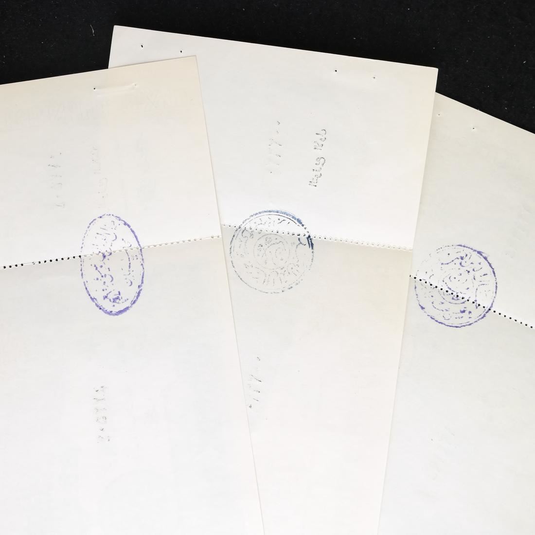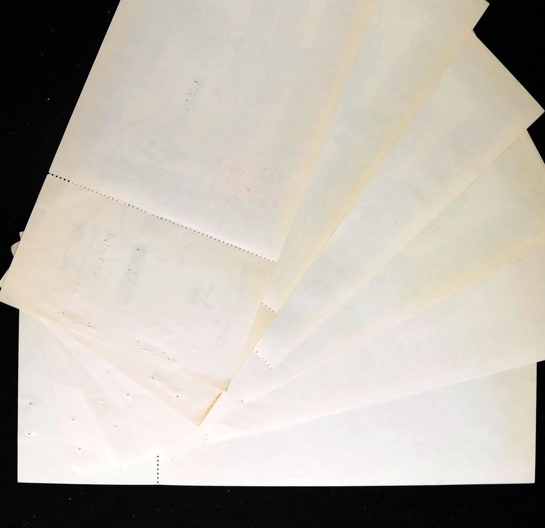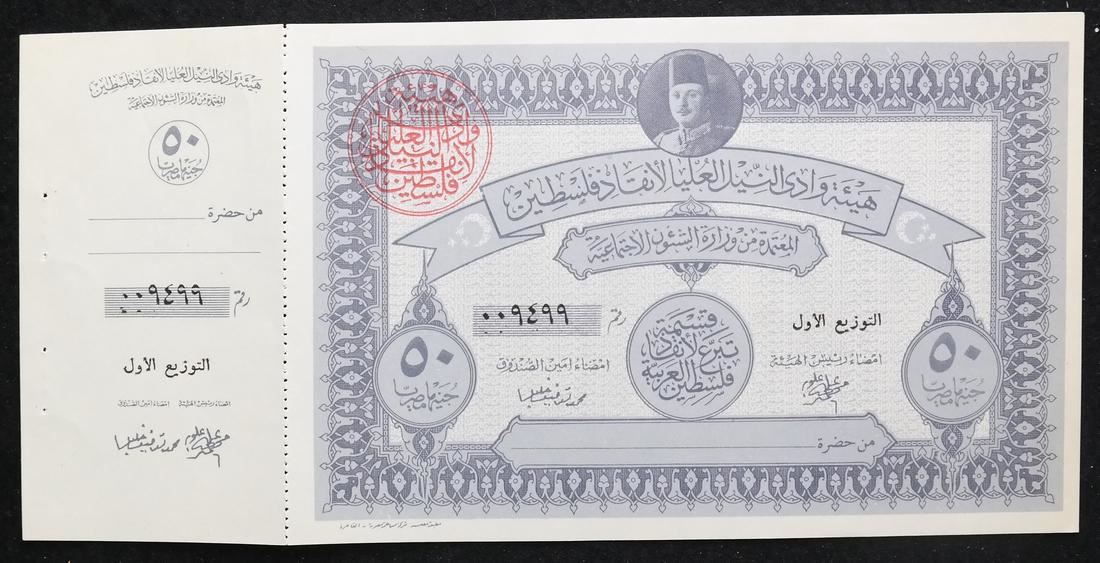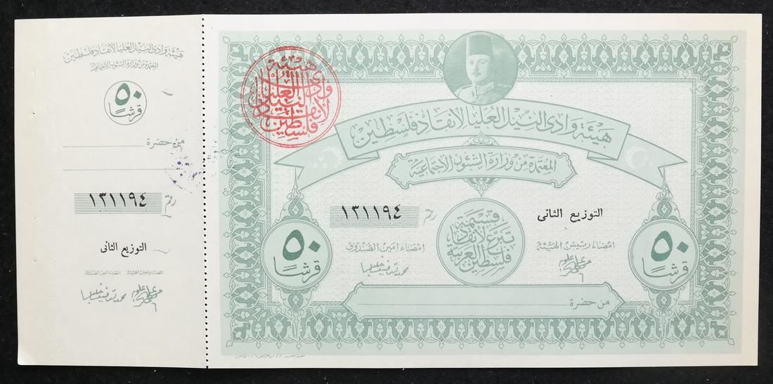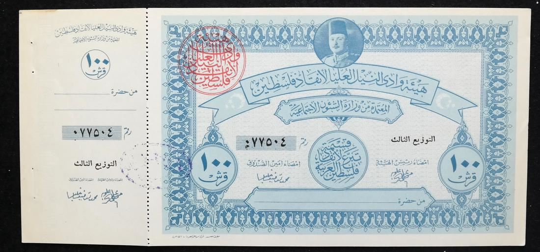 Includes 5, 10, two 50 and two 100 war fund savings notes with original attached counterfoils and red control handstamps, issued to raise funds for the war with Israel, some have control handstamps on back, sound and Uncirculated.