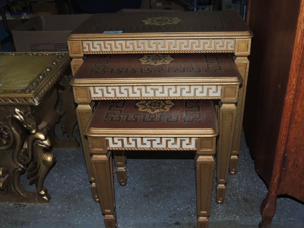 EGYPT 3 NESTING TABLES RECTANGLE LARGEST TABLE 27W X 17 WIDTH X 24 HEIGHT. AS SHOWN. SEE PHOTO FOR MORE DETAILS